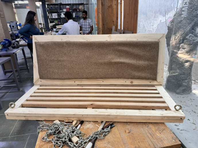 We were given a furniture piece to get Inspiration and built another furniture. So, inspired by the Nelson Platform Bench by Herman Miller, I designed and built a wooden swing that embodies simplicity and craftsmanship. The structure was constructed entirely without nails, using only traditional joinery techniques and wood glue for assembly, ensuring strength and longevity.