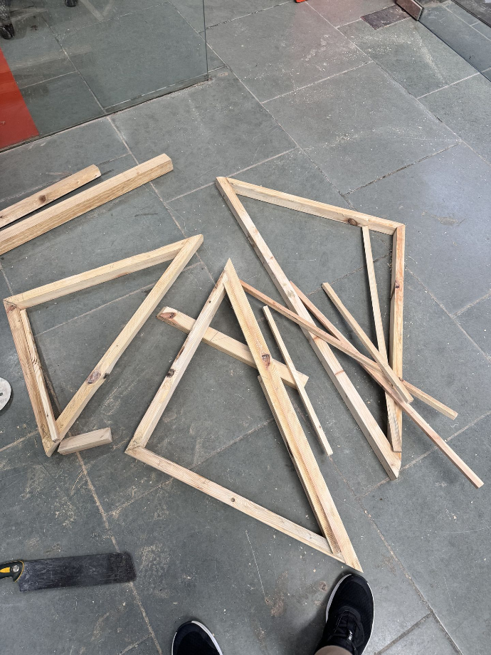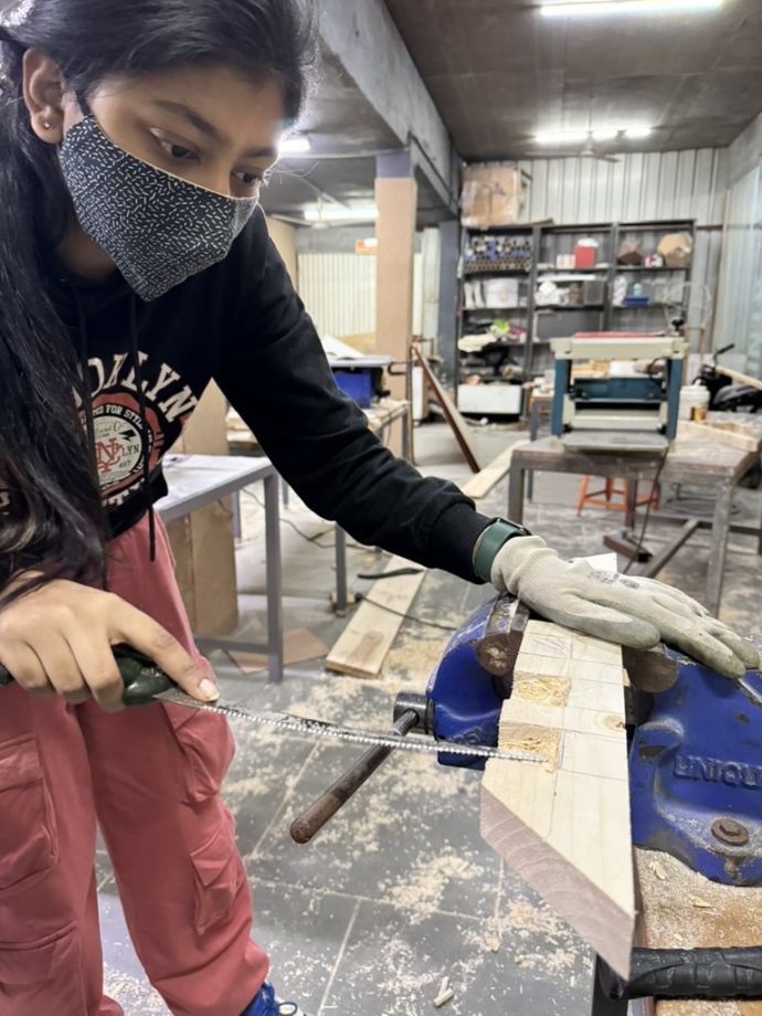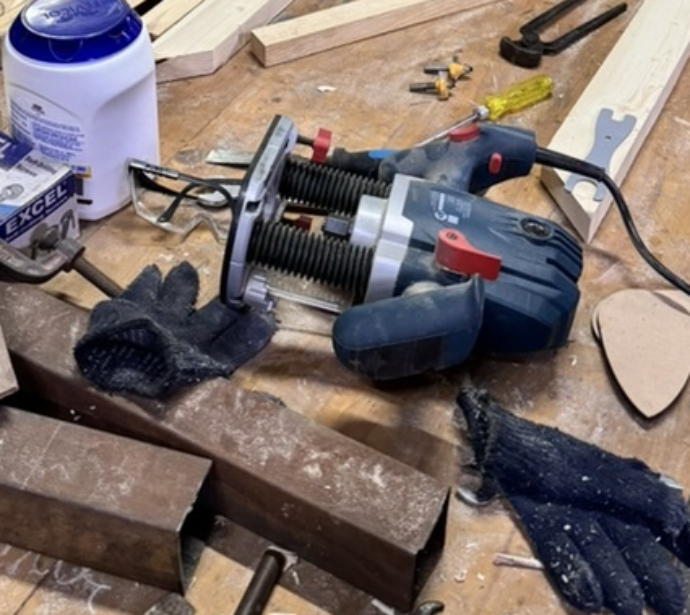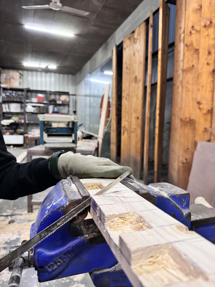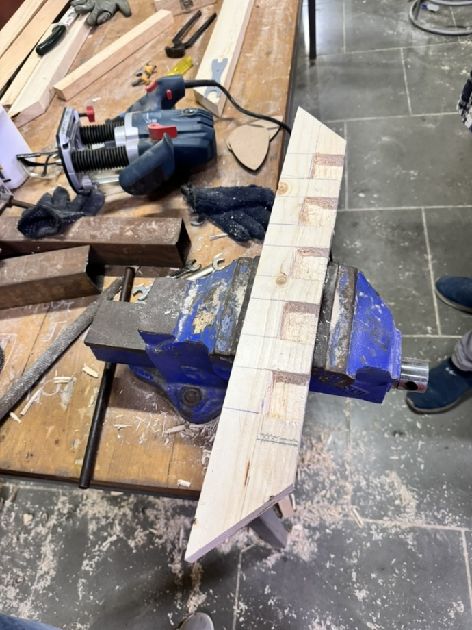 Initially, I developed conceptual sketches and 3D renders to refine the design before moving into full-scale construction using pine wood. A combination of hand and power tools, such as the hand saw, router, belt sander, and miter saw, were used to achieve both accuracy and a refined finish.