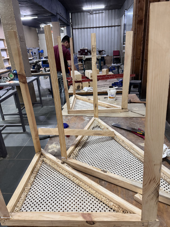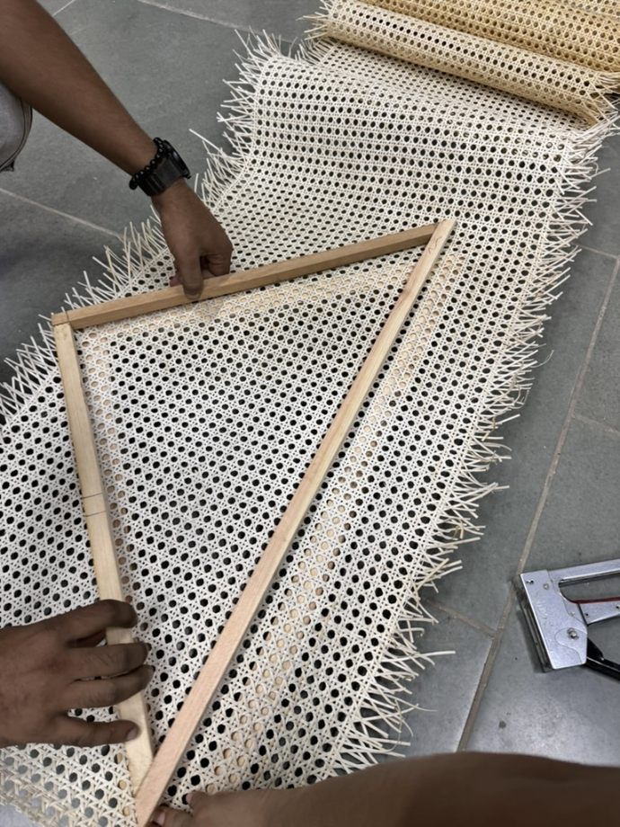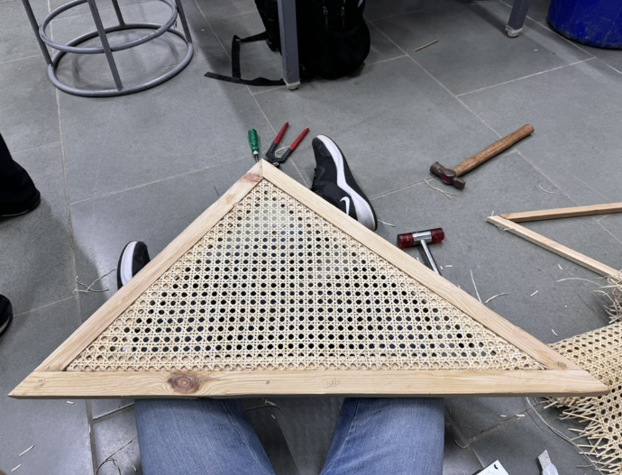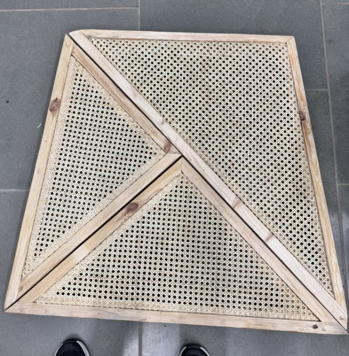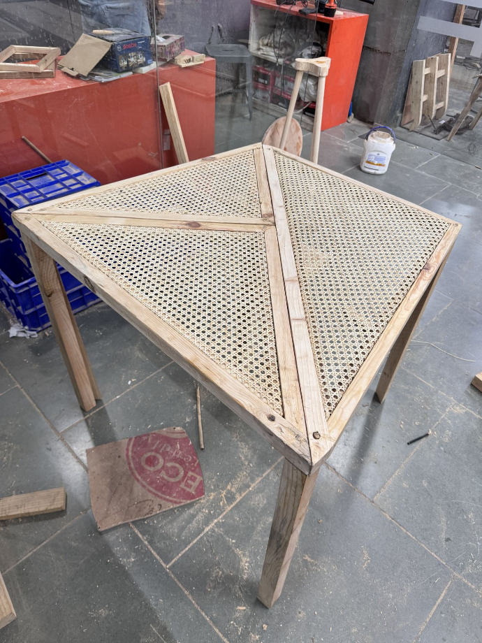 In addition, I designed and fabricated a parallelogram-shaped table that can be divided into three triangular modules, each functioning as an independent table. Constructed at a 1:1 scale using teak wood and rattan cane, this design explores flexibility and modularity in furniture, allowing multiple spatial configurations while maintaining a cohesive aesthetic.