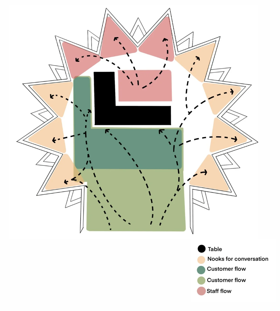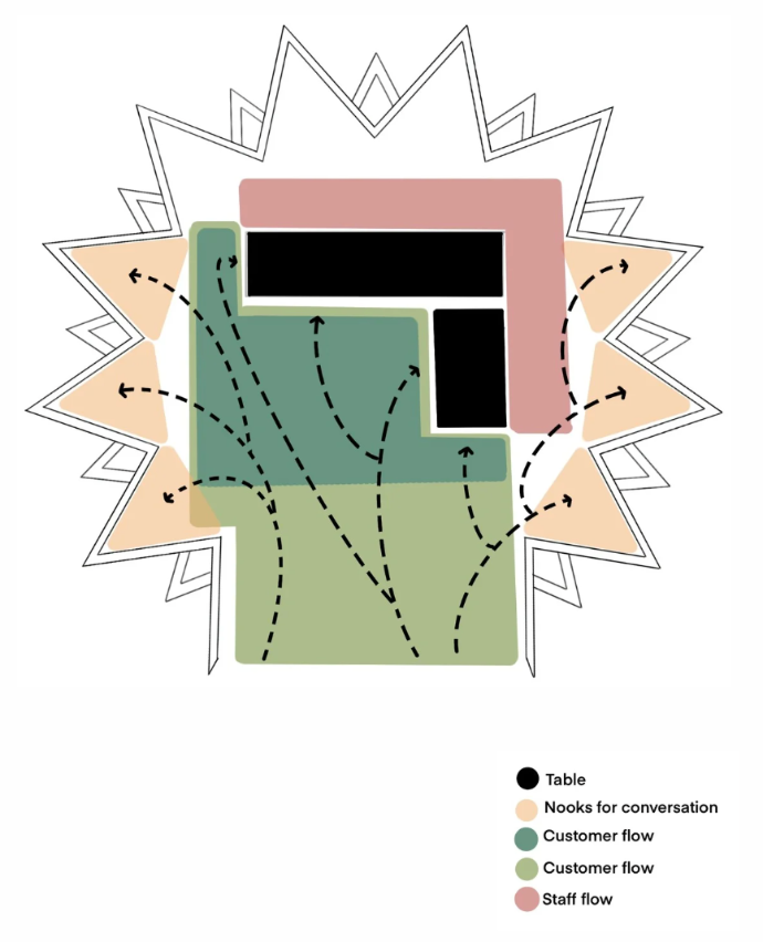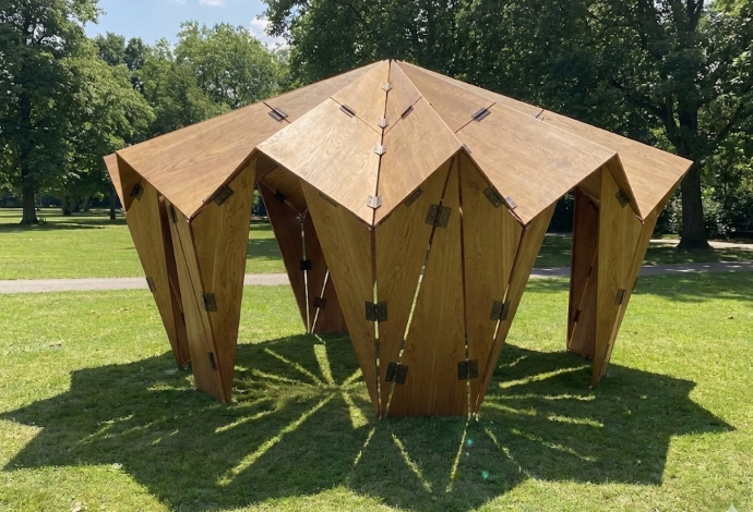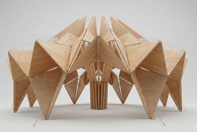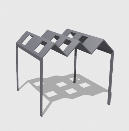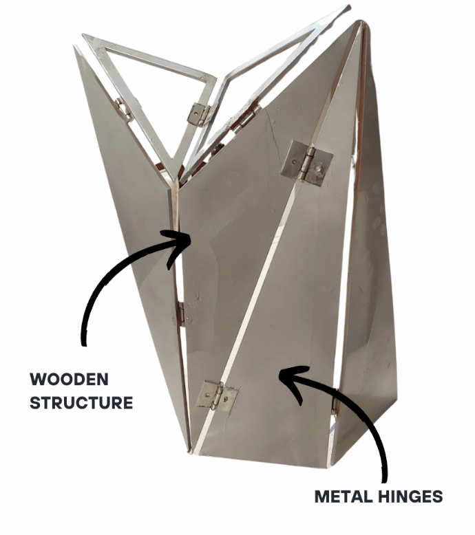 We came up with this while looking at the coffee estate of Chikmagalur like how it acts as a shade and shelter to the coffee, also we wanted to replicate that essence and feeling of that space. This is an origami inspired structure.